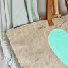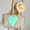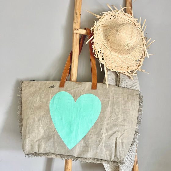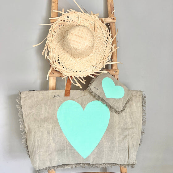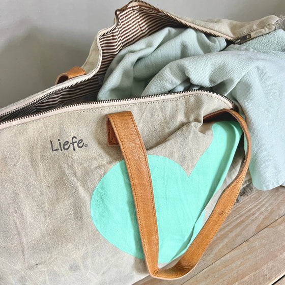 This regal boho bag made of washed vintage canvas combines charm, character, and sustainability in one. With its turquoise heart, charming ruffles, and premium leather handles, it's a faithful companion—whether at the beach, the spa, or your next COUNTRY HIGH getaway.